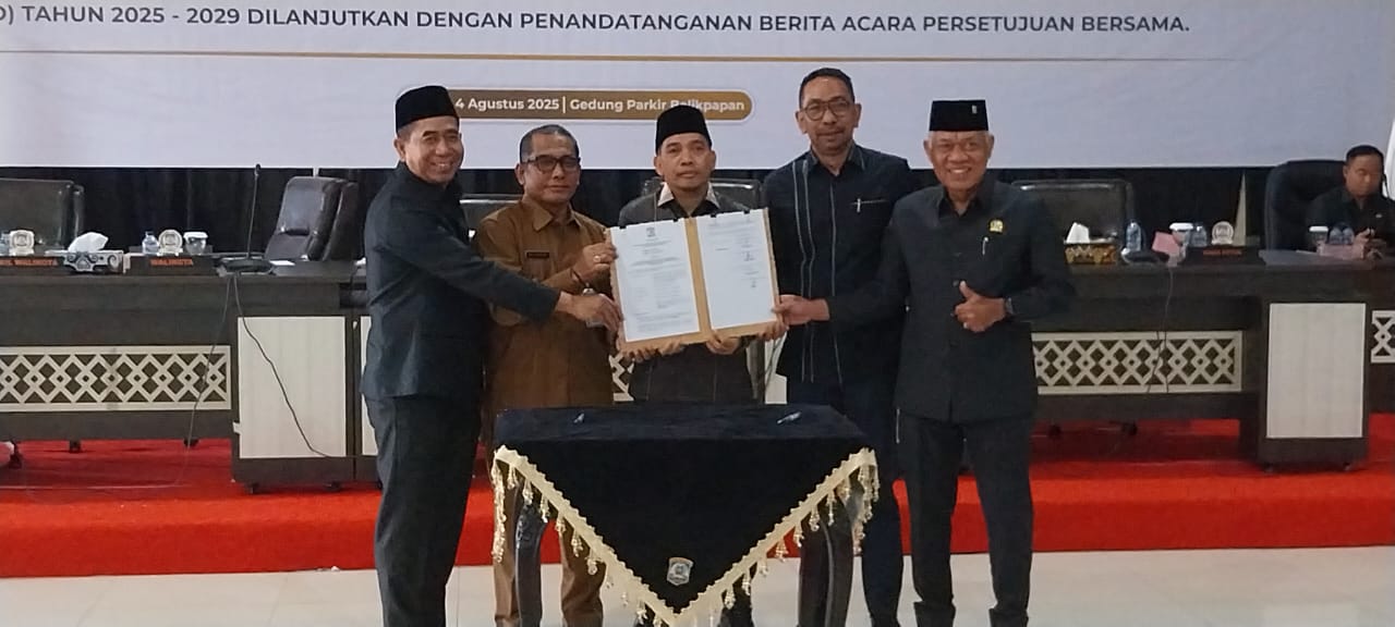 Kesepakatan itu ditandai dengan penandatanganan dokumen oleh Ketua DPRD Alwi Al Qadri didampingi Wakil Ketua, Muhammad Taqwa, Yono Suherman dan Budiono. Hadir mewakili Wali Kota yakni Sekretaris Daerah Kota Balikpapan Muhaimin.